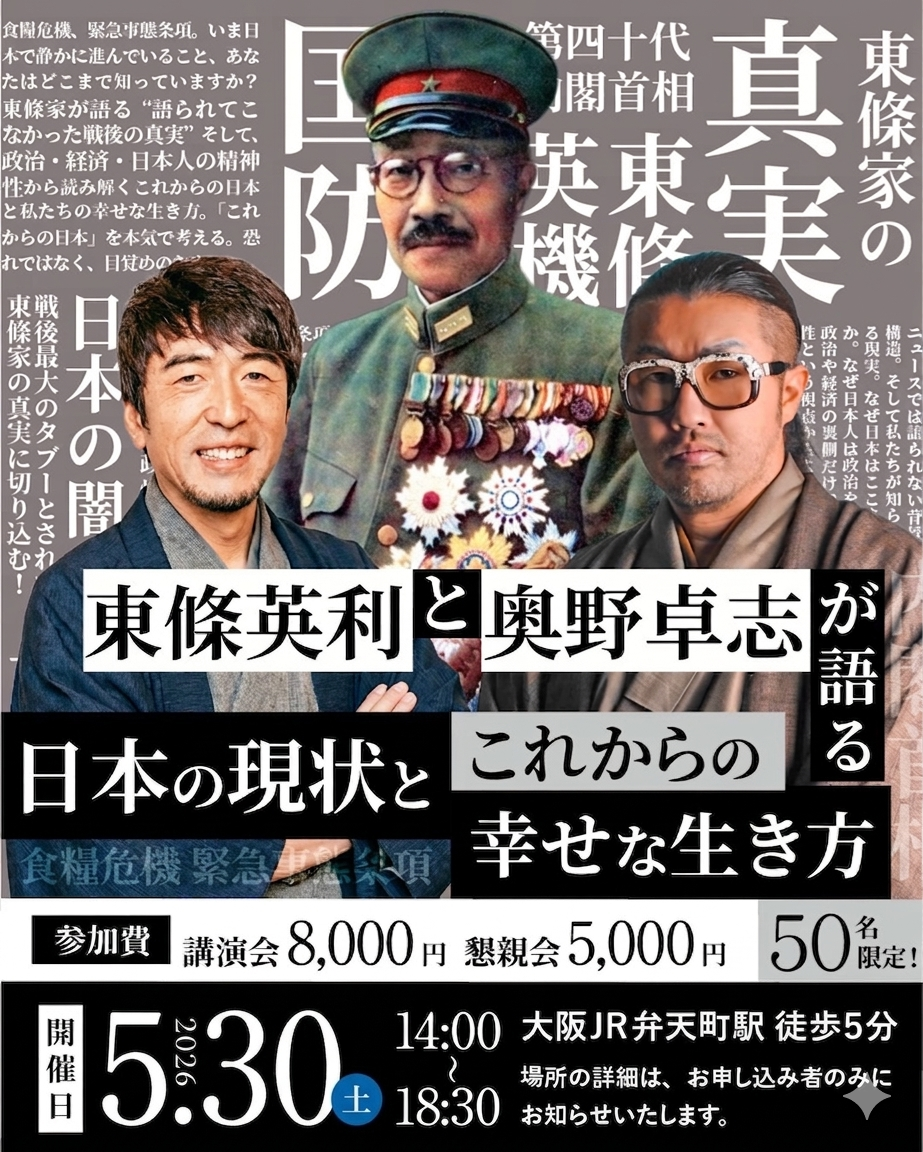 【5月30日14:00スタート】奥野たかし(ごぼうの党)✖東條英利(第40代内閣総理大臣 東條英機 曾孫)国防トーク会